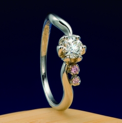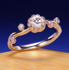 4石のうち2石はピンクダイヤを使用しており桜の花を連想するデザイン❀