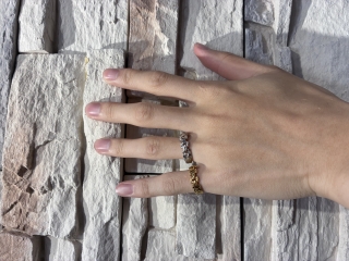 指輪には幅を持たせておりますが、手のひら側はアームが細く創られているため