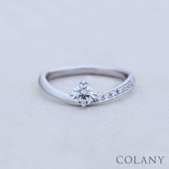 見つめ合う瞳のような、上に伸ばしたダイヤのデザインは重ねづけにもぴったりですね