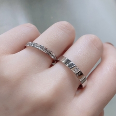 メンズデザインには四角のスペースに1石の彫留めでスッキリ。