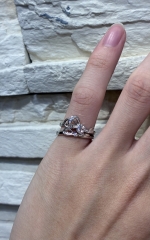 結婚指輪と婚約指輪を重ねていただくと、何重にも重なったリボンがとても美しく