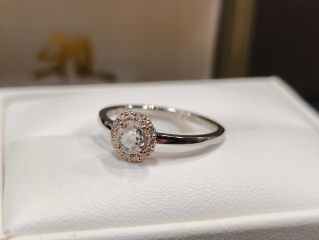 こだわりのピンクゴールドアレンジを加えたダイヤの石枠と