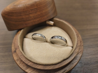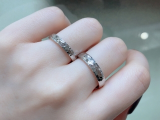 着け心地の良い甲丸リングに施されたペアデザインです
