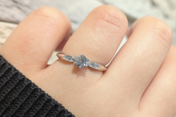 3石ずつメレダイヤをあしらい、センターダイヤと共に凛とした輝きを放ちます❀