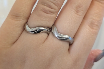 川に流れる桜の花びらをモチーフにしたご結婚指輪。