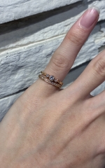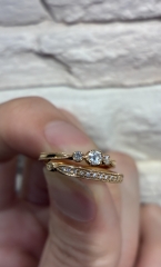 エンゲージリングとレディースマリッジリングの重ね付けです。