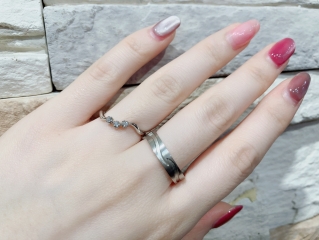 華やかなウェーブが特徴的なダイヤ入りのペアに対し