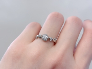 センターダイヤモンドは、ふんわりと花開く桜を思わせる優しいフォルムです❀