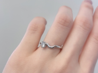 婚約指輪(エンゲージリング)は、ダイヤモンドを小指側へ寄せた