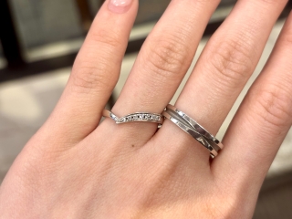 婚約指輪との重ね着けがぴったり合うように整えられた