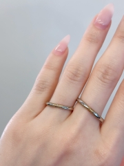 シンプルなプラチナの輝きにワンポイントのアクセントがあります。