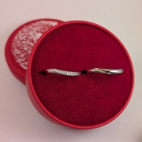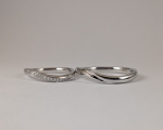 結婚指輪のメレダイヤありのタイプは婚約指輪と綺麗に重なるウェーブライン。丸みのあるフォルムにまたがるメレダイヤは17ピース。軽やかで美しく華のあるデザインです。