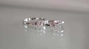 センターダイヤモンドの脇にピンクダイヤモンドをセッティングした婚約指輪です。