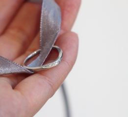 一番後ろに座っている方が結婚指輪をリボンに通し