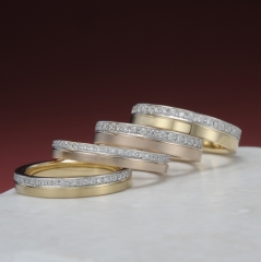プラチナ・ホワイトゴールドのラインがイエローゴールド・ピンクゴールドの可愛さを引き上げ、