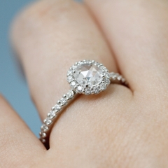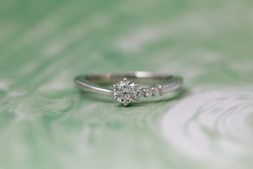 センターダイヤのファセット(面)が少なく優しい印象の輝きと、
