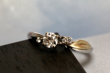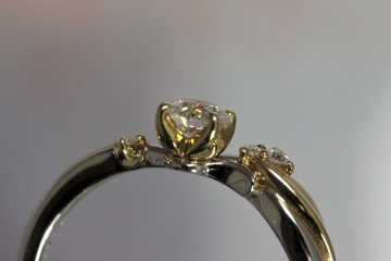 より植物らしく、メレダイヤもセンターダイヤの側ではなく、距離を保って留めました。