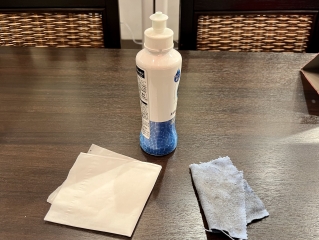 1)メガネ布などの柔らかい布で拭いてみましょう。