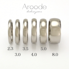 ☞シンプルなストレートラインで心地の良い甲丸リング。アレルギーフリー素材のチタン、ジルコニウムでのオーダーも可能で、リング幅の種類も多い。