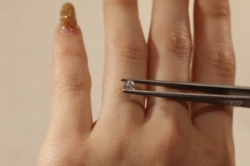 もし可能であれば検討されているダイヤモンドを指に合わせることで