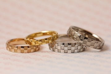 またブライダルリングにはほどんどありませんが、貴金属製品の中にはめっきや張り(クラット)製のものもあり、表面にのみ貴金属を使用し、内部は別の安価な金属で構成しているアイテムもあります。