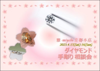 今週の土日、15・16日には、再度当店で2日間限定イベント、『ダイヤモンド&手彫りリングの相談会』を開催いたします。