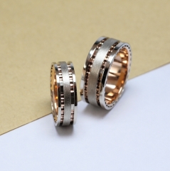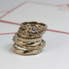 リングの素材はK14のピンクゴールドとホワイトゴールド。2種類のカラーゴールドを組み合わせた美しい構造のリング幅が広めのデザインが多く揃います。