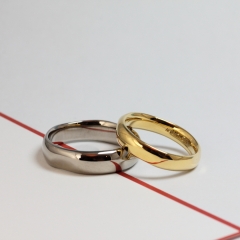 有機的な甘い果実をモチーフに、その表面を柔らかな光沢で表現した結婚指輪。シンプルな甲丸リングのようで、さり気なく不規則に波打つ表面が映り込みで様々な表情をみせてくれます。サンプルのリングはイエローゴールドとホワイトゴールド。メレダイヤなしのぷるんとしたフォルムが着け心地の良いリングです。