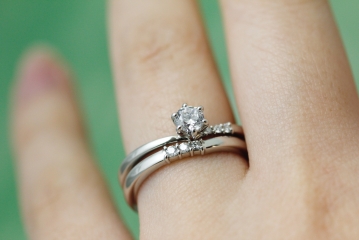 指輪のシルエットは異なりますが、お揃い感を感じられるセットリングとなっています。