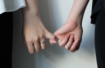 誓いのキスにかわって、誓いの握手や誓いのハグを