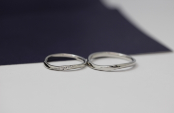 ご結婚指輪との重ね付けはストレート、ウェーブ、V字など
