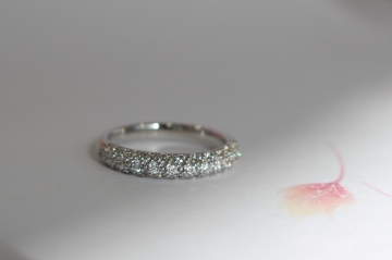 また同じサイズの石をリングの全周に留めたものをエタニティ、半周に留めたものをハーフエタニティと呼び、ダイヤモンドを並べたタイプは婚約指輪(エンゲージリング)や結婚指輪(マリッジリング)として用いられることも多々あります。