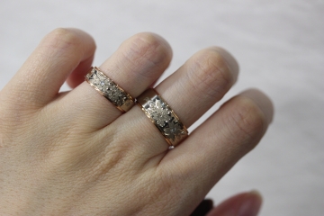 花びらがぐるりと包み込むようにデザインされた結婚指輪、