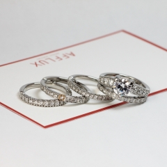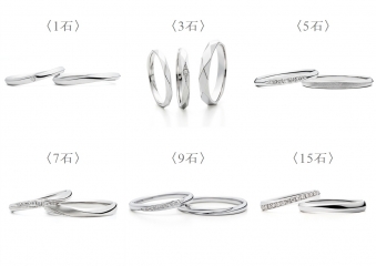 同じダイヤモンドの数でもそのサイズによって見え方が異なり、さらにはダイヤの留め方によっても見え方が異なります。また指のサイズによって同じデザインを選んでも正面から見える範囲が異なるため、店頭で見たサンプルの指輪とは違った印象となる場合もあります。