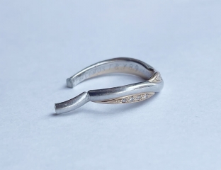 変形した指輪の形状を元通りの真円に戻す修理をします。