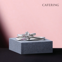愛らしさとミステリアスが魅力のピンクダイヤ。〈CAFERING〉ではファンシーライト/ベリーライトを中心に「ローズ」と「サクラ」の2色からお選びいただくことが可能です。この2色のピンクとホワイトのメレダイヤを組み合わせておつくりした結婚指輪【Robe de mariee-ローブドゥマリエ-】はグラデーションが美しく人気のデザインです。