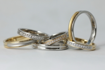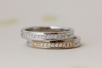 例えばプラチナ×ピンクゴールドといった素材の組み合わせのリングや、グロス×マットといった表面仕上げの組み合わせのリングなどを指します。