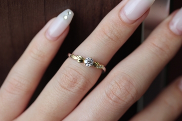 アームは細身で大人可愛い印象のご婚約指輪。
