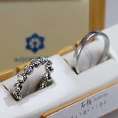 ブライダルリングで一般的なお素材「プラチナ」「ゴールド」だけではなく、当店のお取り扱いブランドのひとつ〈Aroode〉では金属アレルギー対応素材の「チタン」でおつくりできるエタニティリングもございます。金属アレルギーでダイヤ付きのリングを諦めていたという方もぜひご相談いただければ嬉しく思います!