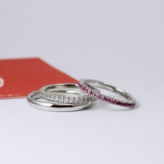 またダイヤモンドだけではなくピンクサファイアを留めたタイプもあり、華やかな色味を楽しみたい方や誕生月が9月という方にも誕生石なのでぴったりのエタニティリングです。