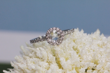 センターダイヤの周りと、アームの半周をラウンドカットのメレダイヤで