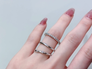 同じデザインでもダイヤモンドが1石なのか、半周なのか、全周なのかで